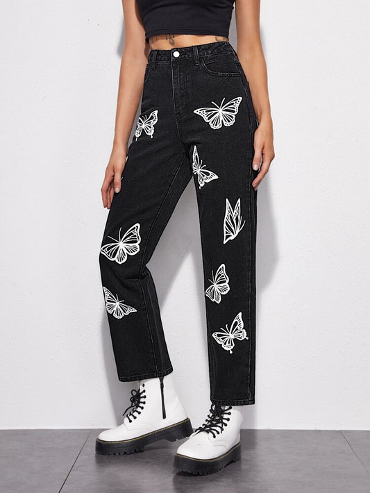 Black butterfly print jeans