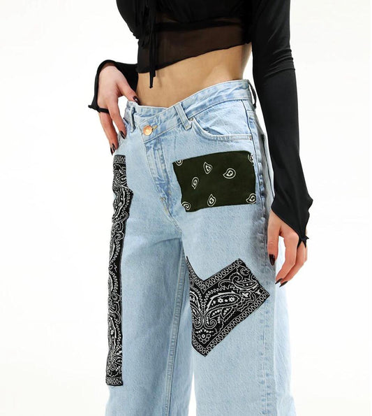 Black Bandana Wide Leg Jeans