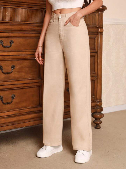 SaleBeige Wide Leg Jeans